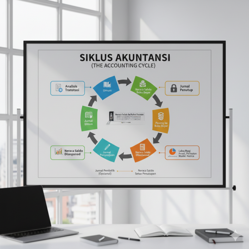 Siklus Akuntansi adalah serangkaian langkah sistematis yang dilakukan oleh seorang akuntan untuk mencatat, mengolah, dan menyajikan data keuangan perusahaan menjadi laporan yang dapat digunakan. Meskipun terdengar rumit, siklus ini hanyalah proses logis yang berulang di setiap periode akuntansi (biasanya bulanan atau tahunan).